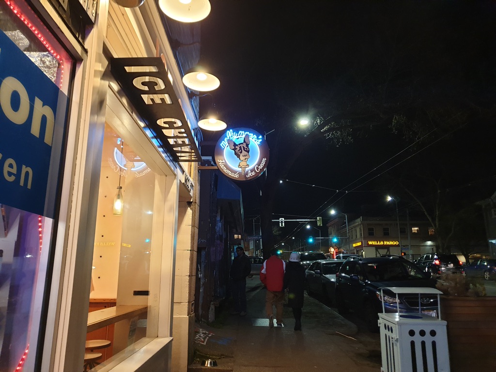 여행의 마무리는 역시 달콤해야겠죠? 저녁으로 근처에서 매콤한 태국 음식을 즐긴 후, 시애틀의 소울 푸드라 불리는 몰리 문스 홈메이드 아이스크림(Molly Moon’s Homemade Ice Cream)으로 향했습니다. 밤에 방문하니 웨이팅 없이 바로 이 마법 같은 맛을 만날 수 있어 운이 좋았어요! 🌙
